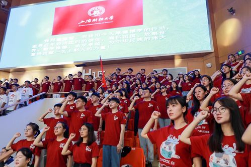 随后,徐飞常务副校长、姚玲珍副校长为新生代表佩戴校徽,全体新生传承了“上财人”这一共同的名字,面向校旗,庄严宣誓将“胸怀祖国、放眼世界、勤学修德、追求卓越,为中华民族的伟大复兴贡献一名上财人的力量”。