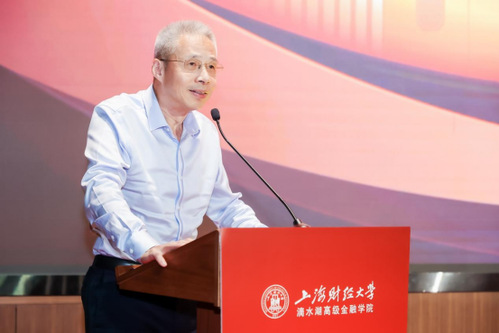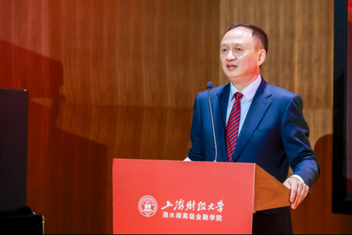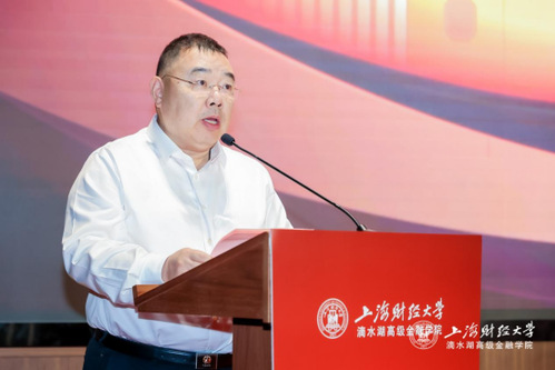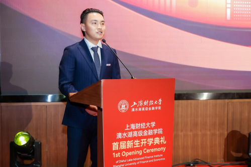 上海财经大学校长、党委副书记、上海财经大学滴水湖高级金融学院院长刘元春发表致辞,表示学院将全面贯彻新发展理念,着力培养具有全球引领性创新型高端金融人才,全面推动上海自贸区临港新片区打造更具国际影响力和竞争力的特殊经济功能区,积极助力上海国际金融中心功能全面升级,为国家乃至全球金融发展贡献智慧与力量。他同时也希望新生做临港新片区的“先行者”和代言人,做金融行业的坚守者、奋进者,做时代的开拓者、创新者,积极投身临港新片区新兴金融中心建设与上海国际金融中心建设,为祖国贡献出澎湃的金融之力!