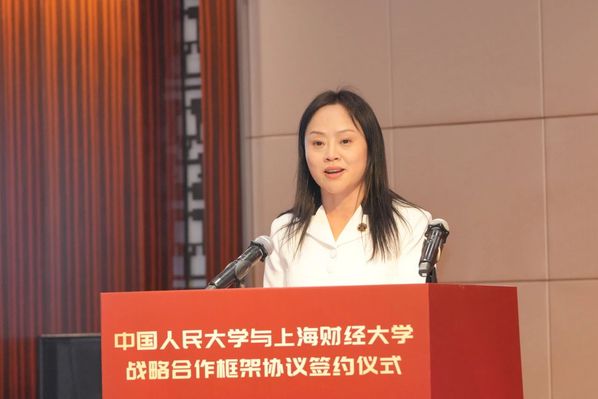 中国人民大学党委书记张东刚、上海财经大学党委书记许涛出席仪式并讲话,教育部社会科学司司长徐青森,上海财经大学校长、党委副书记刘元春,中国人民大学党委副书记郑水泉出席并见证签约,中国人民大学副校长郑新业与上海财经大学副校长李增泉共同签署协议。