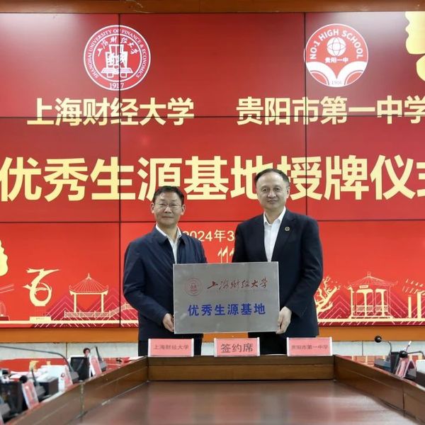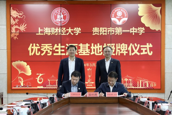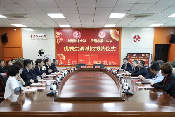 3月24日上午,许涛书记带队赴贵阳市第一中学参访,并授予贵阳一中优质生源基地称号,为省校双方在招生选拔、人才培养方面开展合作打下扎实基础。许涛调研了贵阳一中正本书院、学生心理中心和科创中心建设情况,并与学生代表亲切交流。上海财经大学与贵阳市第一中学还举办了优质生源基地授牌仪式。会上,省委教育工委副书记,省教育厅党组书记、厅长邹联克与校党委书记许涛致辞并共同见证双方签订新一轮优质生源基地建设协议。贵州财经大学党委书记战勇、省招生考试院党委书记田军陪同参与调研,贵阳市教育局党委书记、局长李波主持签约仪式。