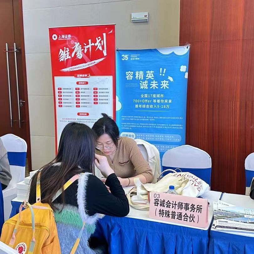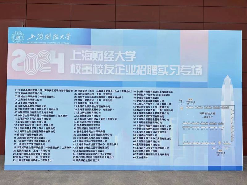 4月23日下午,我校招生就业处与合作发展处共同组织举办2024年校董校友企业招聘实习专场,本场招聘会共有68家企业参与,覆盖金融、科技、制造等多个行业,提供156个就业及实习岗位,1150个招聘需求,为上财学子提供了丰富多样的就业及实习选择机会。同学们踊跃报名,现场有来自上海财经大学、复旦大学、华东师范大学、上海对外经贸大学、西南财经大学、新加坡国立大学、澳大利亚国立大学等多所国内外高校的300余名学生参加。