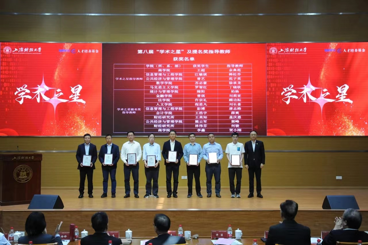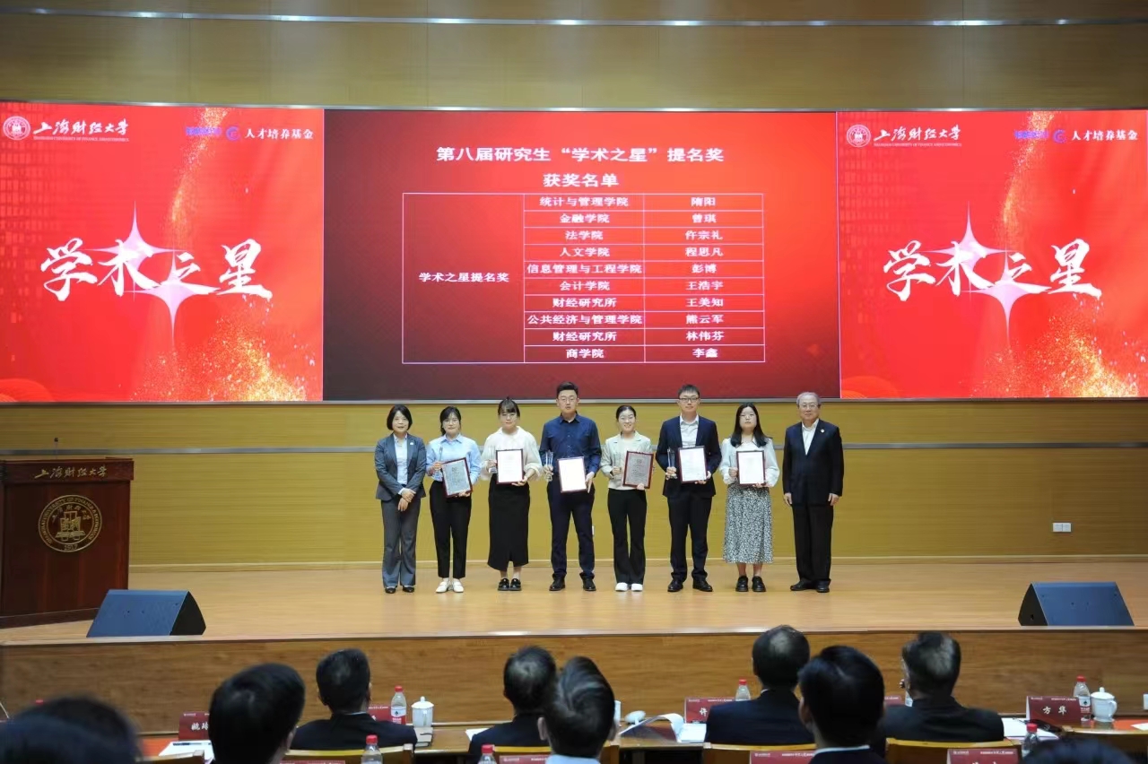 5月14日下午,上海财经大学第八届研究生“学术之星”颁奖典礼在创业中心一楼报告厅隆重举行。本次活动以“勇当学术之旅的追光者,争做经济匡时的卓越人”为主题。