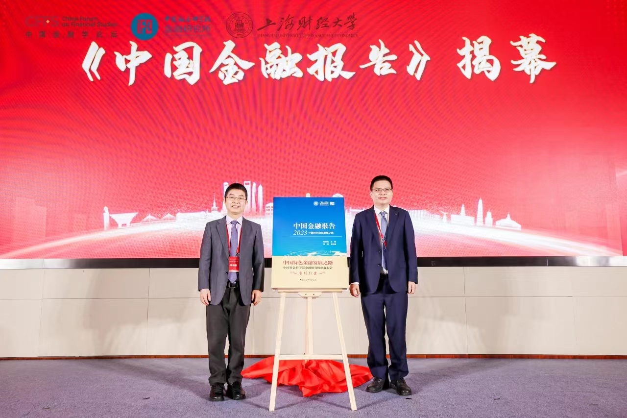 中国社会科学出版社总编辑杨志勇、中国社会科学院金融研究所所长张晓晶共同为《中国金融报告》揭幕。