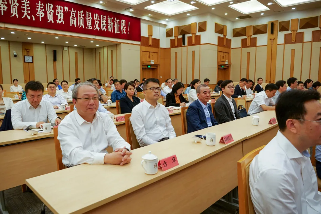 5月23日,上海财经大学习近平经济思想研究院奉贤分院揭牌仪式、奉贤讲习所授牌仪式暨首场宣讲活动在奉贤区委会议中心举行。上海财经大学校长、著名经济学家刘元春就习近平经济思想专题为奉贤区委中心组学习授课。奉贤区委书记袁泉、上海财经大学党委常委、副校长方华出席会议。