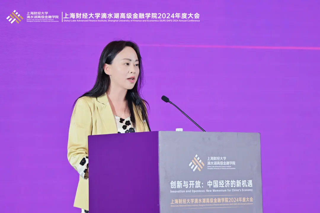 滴水湖高级金融学院执行院长陈选娟汇报了学院的周年建设成果,并发布了《2024年度中国新兴金融发展报告》。