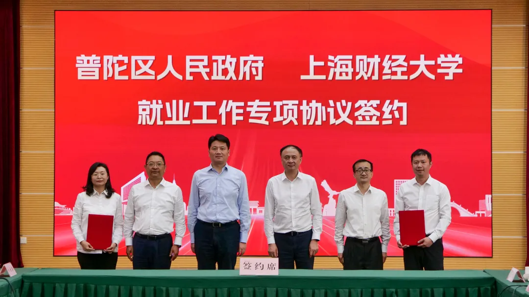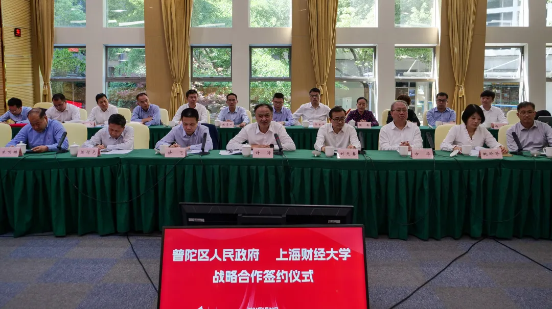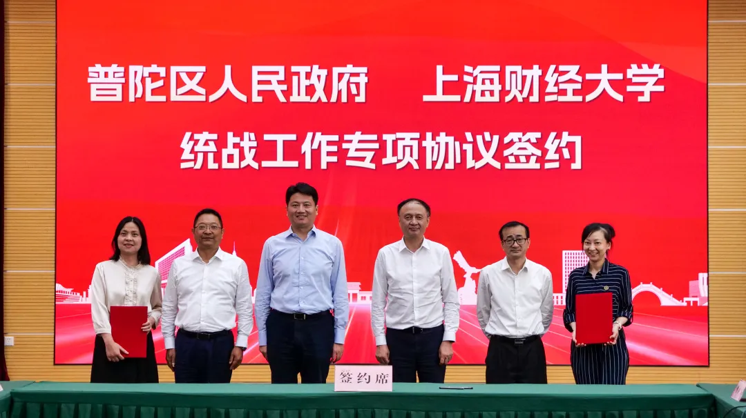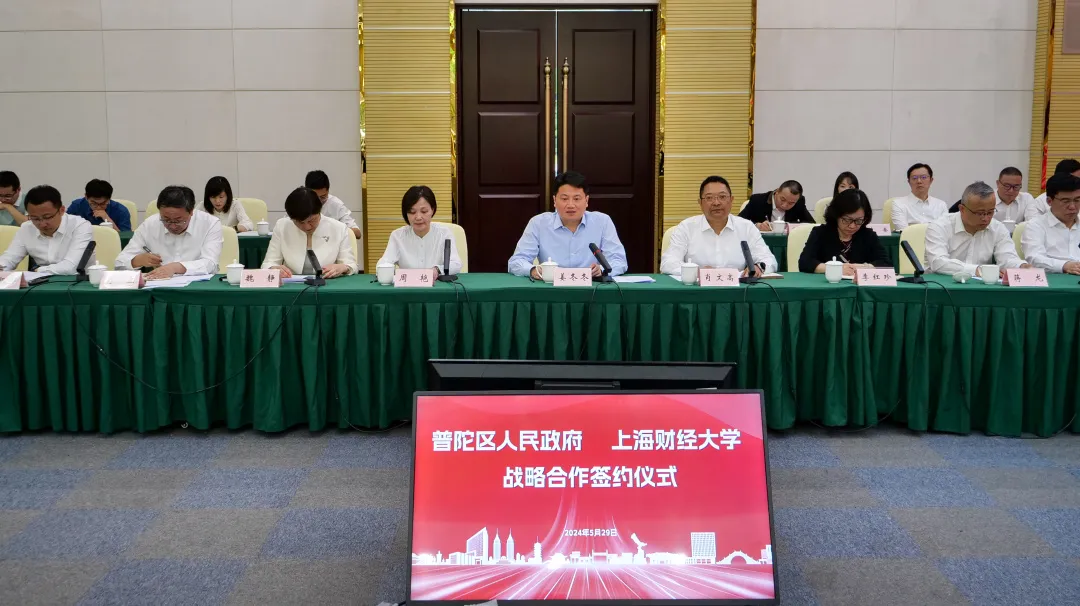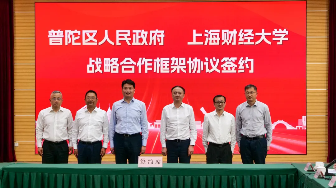5月29日下午,上海财经大学与普陀区人民政府签署战略合作框架协议,双方将共同推动上海市普陀区经济高质量发展和上海财经大学世界一流大学建设,为上海加快建成具有世界影响力的社会主义现代化国际大都市携手贡献力量。普陀区委书记姜冬冬,区委副书记、区长肖文高,区领导周艳、刘东昌、李红珍、魏静、蒋龙、肖丽;校党委书记许涛,校长、党委副书记刘元春,校领导徐飞、方华、陈信元、姚玲珍、朱鸣雄、李增泉,校长助理刘莉亚、刘庆生,校党委常委、宣传部部长曹东勃,校党委常委、统战部部长褚华等出席。