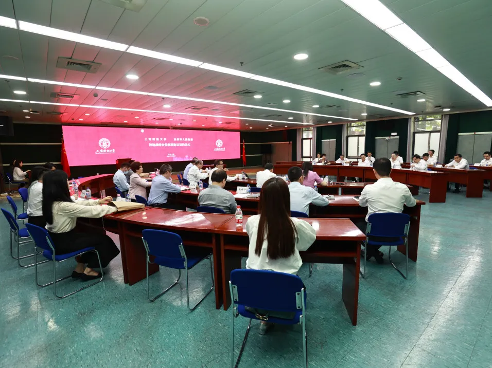 会上,在刘元春校长、陈信元副校长、朱鸣雄副书记与邵革军书记、孙骏部长、唐志坤副市长共同见证下,方华副校长与冯永刚副市长代表双方签署校地战略合作框架协议。