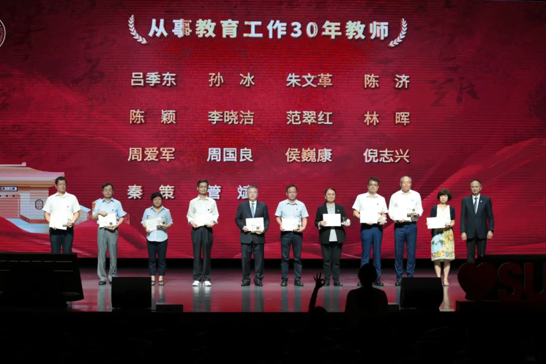校党委书记许涛代表学校党委向全校广大教师和教育工作者致以节日问候,向获得奖励的教师代表表示热烈祝贺,向从教30年以及所有为党的教育事业兢兢业业、无私奉献的教师、向所有坚守在教学科研和管理服务岗位的教职工致以崇高敬意。许书记强调,教师是立教之本、兴教之源,立足建设中国特色世界一流财经大学的新时代使命,学校始终以新时代教育家精神引领高素质教师队伍建设,为服务中国式现代化建设贡献力量。许书记对全体教师提出了三点期望,一是要坚定理想信念做好老师、大先生;二是要坚持潜心治学做开拓者、创新者;三是要坚守上财精神做传承者、践行者。他希望大家能牢记习近平总书记对广大教师的殷切嘱托与期望,胸怀“国之大者”,发扬教育家精神,聚焦立德树人根本任务,从身边的榜样汲取奋进力量,服务支撑党和国家重大发展战略,不断为进一步全面深化改革、推进中国式现代化提供强大精神力量,贡献上财人的智慧和担当!