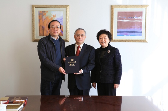 周太彤校董回忆了学校的发展历程,对学校近年来的事业发展给予了充分肯定和高度评价,并对学校的未来发展提出殷切期望。校党委书记、校董会主席丛树海向周太彤校董颁发了校董聘书,并与周太彤校董合影留念。