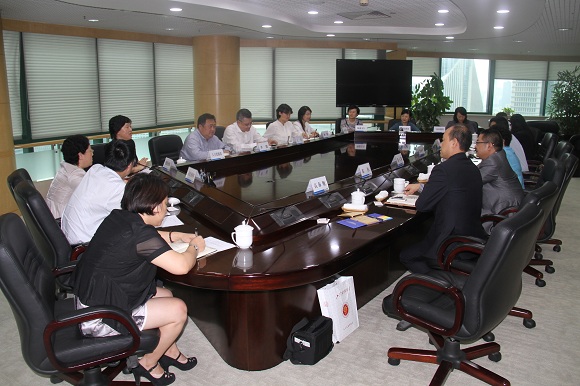 2014年9月18日,樊丽明校长、方华副校长率相关职能部门负责人一行七人赴我校校董单位中国建设银行上海分行交流访问,拜访我校校董、中国建设银行上海分行王江行长。