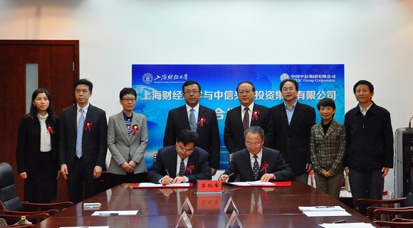 2014年11月8日下午,在学校迎来97岁生日,上海财经大学校董会成立2周年纪念日的喜庆日子,上海财经大学与中信兴业投资集团有限公司校企合作签约仪式在我校国定路校区红瓦楼一楼会议室隆重举行。