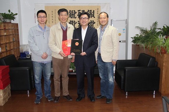 会谈结束后,王育松行长还与我校发展合作邓伟处长、校百年校庆刘志远主任、金星副主任合影留念。