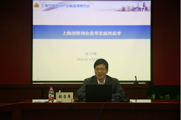 随后,上海市政府副秘书长、国资委主任、党委书记金兴明校董为大家做了题为“上海国资国企改革发展的思考”的精彩报告。首先,金兴明校董简要回顾了上海国资国企十二五工作及十三五规划。他指出,早在十二五期间,上海市的国资国企改革就已先行一步,布局结构进一步调整优化,国有企业改革取得了新进展,国资管理的体制机制不断完善,并在创新发展上迈上了一个新的台阶。他从深化开放性市场重组、优化企业的布局等六点出发阐述上海市在十三五期间对于国资国企改革的规划。接着,他指出国资国企改革发展的两大要素,即先进理念引领与改革创新驱动。上海市委市政府提出要在下半年掀起创新创业第二轮高潮,并通过不断优化经济结构,坚持创新、协调、绿色、开放、共享五大理念,迎接经济新常态及供给侧结构性改革下的一系列挑战。最后,金兴明校董分享了他关于进一步深化国资国企改革的一些思考。他针对当前国资国企存在的主要的三个问题和一个不适应,提出深化改革要从“三个着力”和“三个坚定”出发,即着力服务国家战略和市经济社会发展,坚定推进国资国企改革发展;着力优化布局调整结构,坚定贯彻创新驱动、转型升级方针;着力降成本、补短板、防风险,坚定实施提质增效、稳定增长措施。