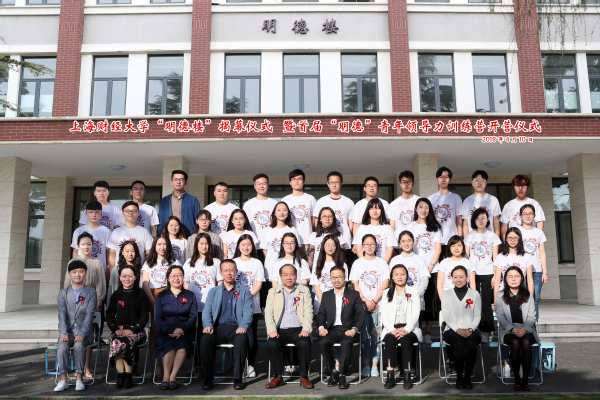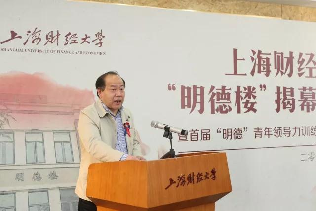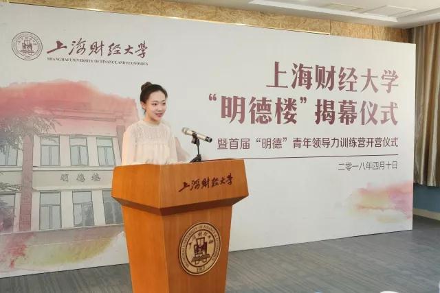 2018年4月10日下午,上海财经大学“明德楼”揭幕仪式暨首届“明德”青年领导力训练营开营仪式在武东校区明德楼一楼会议室举行。我校校董、上海道得投资管理合伙企业创始人武飞校友,上海道得投资管理合伙企业董事总经理张良校友,领导力语法创始人、独立顾问李峰先生,我校党委副书记朱鸣雄及相关学院领导、职能部门领导、训练营学员代表等共同出席揭幕仪式。