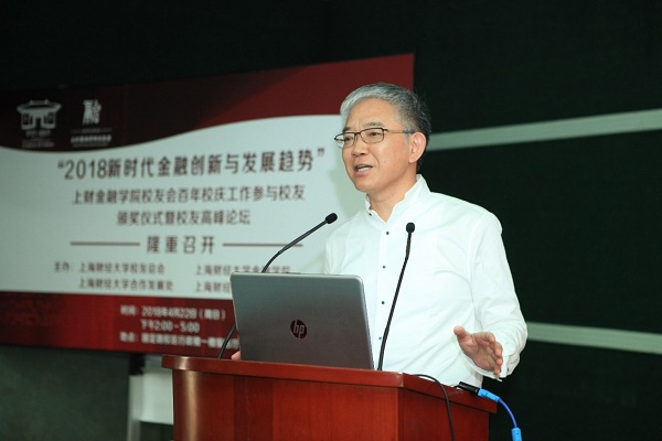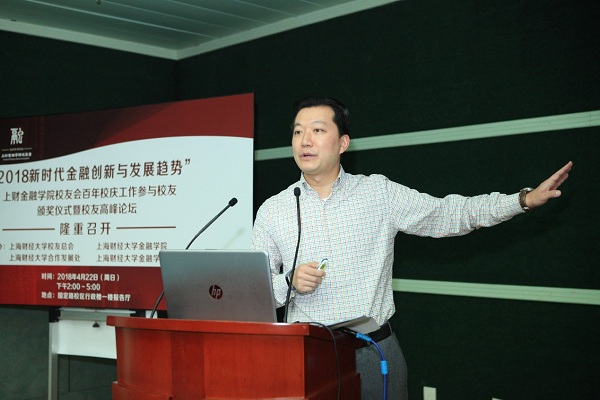 4月22日,“2018新时代金融创新与发展趋势”校友高峰论坛在上海财经大学行政楼一楼报告厅举办。论坛由国海证券股份有限公司证券资产管理分公司、市场营销总部总经理兼行政管理总部总经理,2005级金融学博士连剑平主持。五位发言嘉宾分别为:我校校董、原浙商银行行长刘晓春,上海景领投资公司董事长张训苏,原浦发银行总行交易银行部总经理杨斌,我校校董、上海道得投资管理合伙企业创始人武飞,领航投资香港有限公司CEO、Vanguard集团中国区总裁、先锋领航投资管理(上海)有限公司董事长林晓东。上海财经大学合作发展处处长陈红梅、金融学院党委书记刘莉亚、金融学院常务副院长柳永明出席本次论坛。