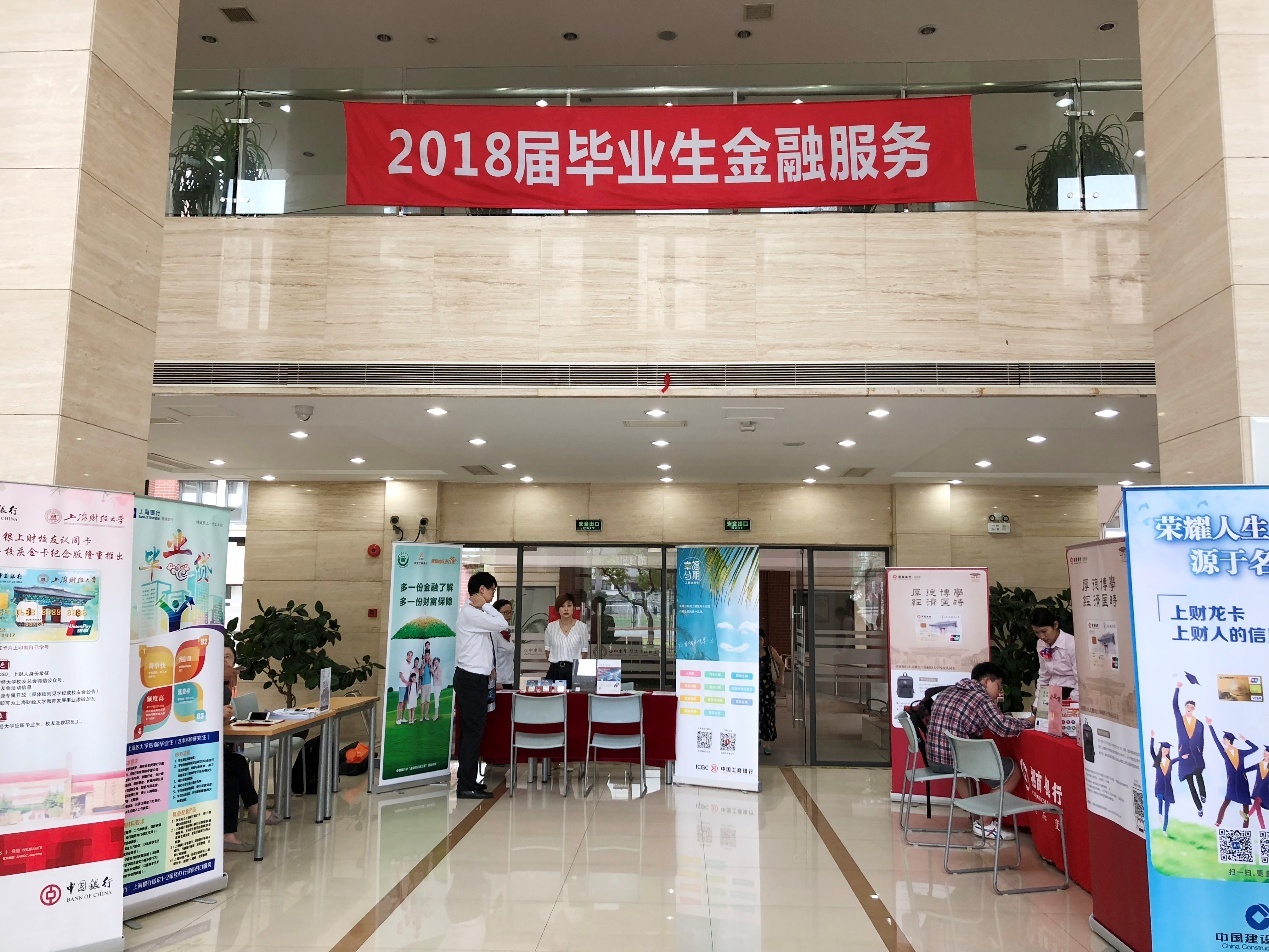 岁月如歌,同源同德,又一年毕业季悄然而至。为缓解毕业生步入社会或出国留学产生的房租、留学费用等方面的压力,切实服务我校应届毕业生,6月19日至21日,合作发展处组织我校多家校董单位——中国工商银行、中国银行、中国建设银行、招商银行、上海银行等联合举办“2018届毕业生金融服务会”,为全校毕业生送上多样化的金融服务。