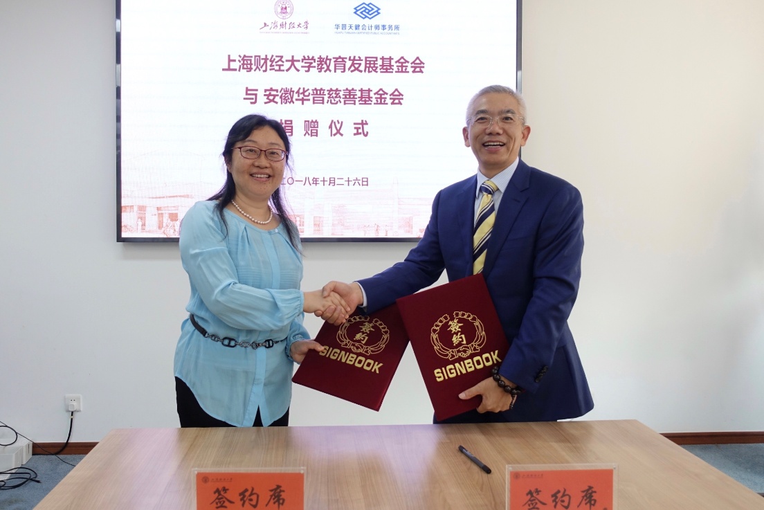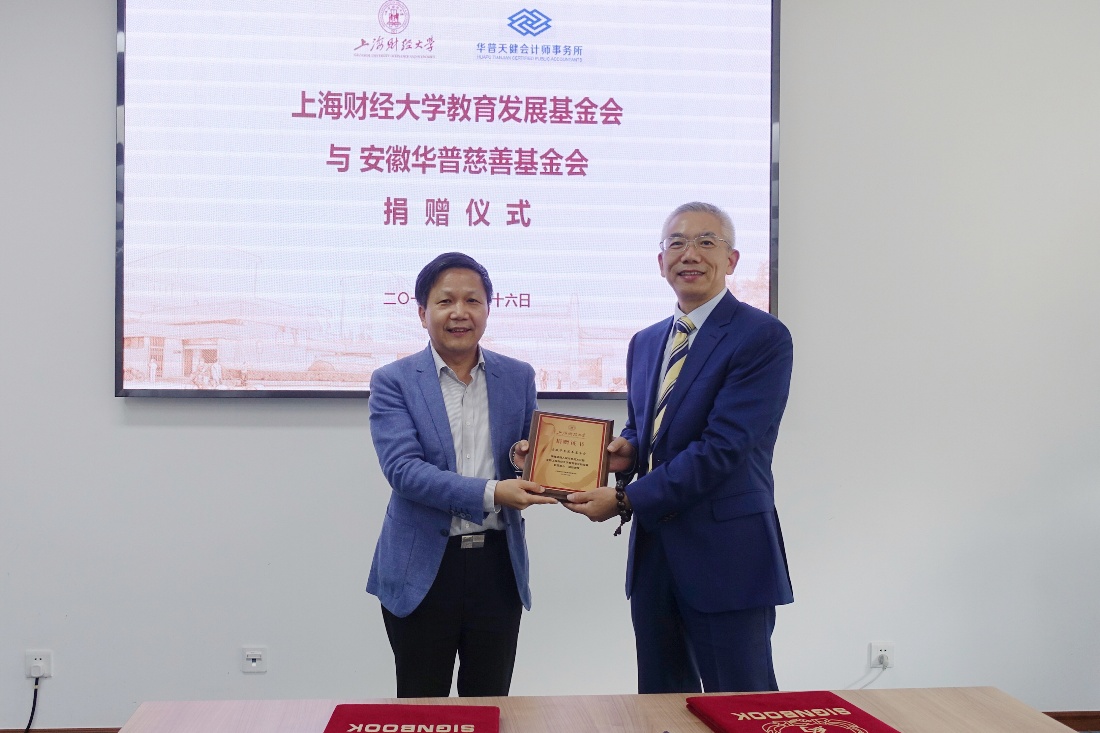 10月26日下午,我校与安徽华普慈善基金会捐赠签约仪式在创业中心202会议室举行。华普天健会计师事务所首席合伙人、1988届会计学本科校友肖厚发;上海财经大学副校长陈信元,合作发展处处长、基金会秘书长陈红梅等共同出席捐赠仪式。