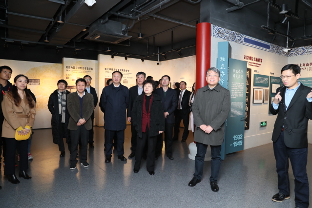 会前,郭新立、樊丽明一行与许涛、蒋传海、陈信元及相关部门领导一同参观了学校校史馆与商学博物馆。