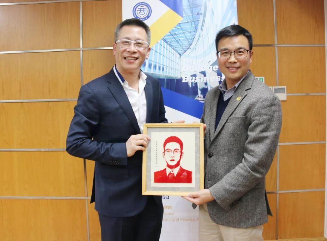 最后,薛丽萍书记向朱功增校董、校友颁发分享证书,魏航副院长为朱功增校董、校友赠送人物剪影留念。本次会长进课堂活动圆满结束。商学院校友会“会长进课堂”由上海财经大学商学院发起,定期邀请商学院校友会中担任会长、副会长的杰出校友走进课堂,通过发挥校友会会长群体的集体智慧力量,树立在校生的理想与信念、鼓励创新精神、促进学生综合素质的提升,助力商学院“知行合一”的教学改革实践,积极推动实现“立足上海、根植中国、放眼全球,具有鲜明财经特色的中国一流、国际知名”的商学院。