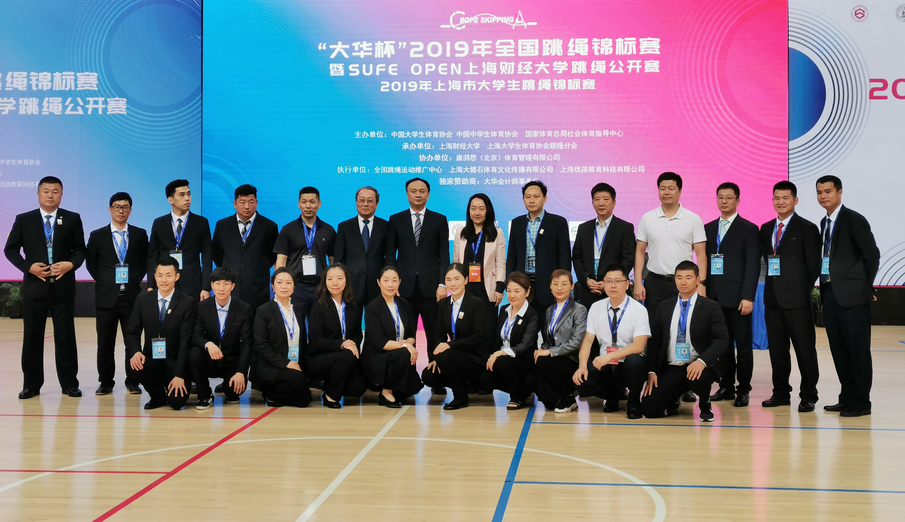 6月2日上午9:00,由国家体育总局社会体育指导中心、中国大学生体育协会、中国中学生体育协会主办,由上海财经大学、上海大学生体育协会跳绳分会承办,由康湃思(北京)体育管理有限公司协办,由全国跳绳运动推广中心、上海大健石体育文化传播有限公司、上海优孩教育科技有限公司具体执行、由我校校董单位大华会计师事务所独家冠名赞助的“大华杯”2019 年全国跳绳锦标赛暨SUFE OPEN 上海财经大学跳绳公开赛在上海财经大学体育馆盛大开幕。来自北京、广东、山东、陕西、上海、四川、浙江、重庆等全国18个省、市共计69支参赛队伍和各地的领导嘉宾汇聚一堂。