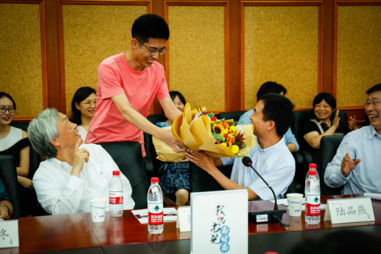 大家通过视频分享了陆品燕教授获奖的荣耀时刻,学生代表献花送上诚挚的祝福。