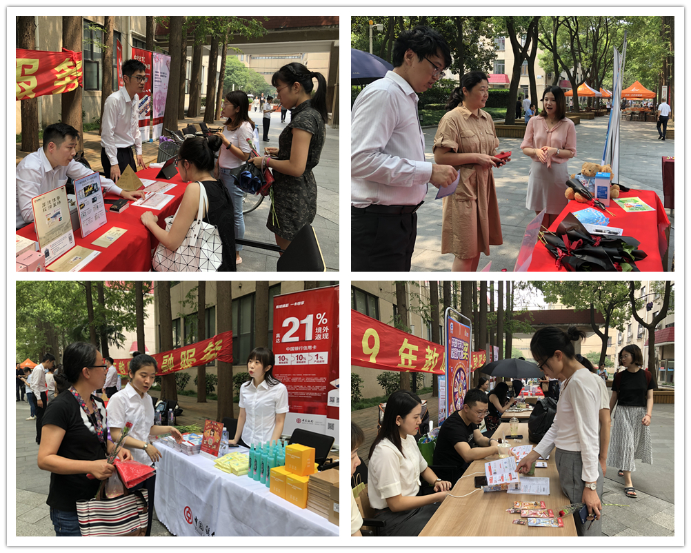活动当天,五家银行不仅为我校教职工准备了精心策划的教师节定制产品,还为老师们送上了美丽的鲜花和礼物,吸引了不少老师驻足咨询,金融产品和服务涉及工作、生活、投资等各个方面,工作人员热情细致地为每一位老师答疑解惑、分析指导,绿叶步行街笑声连连,温情满满,活动取得了圆满成功。