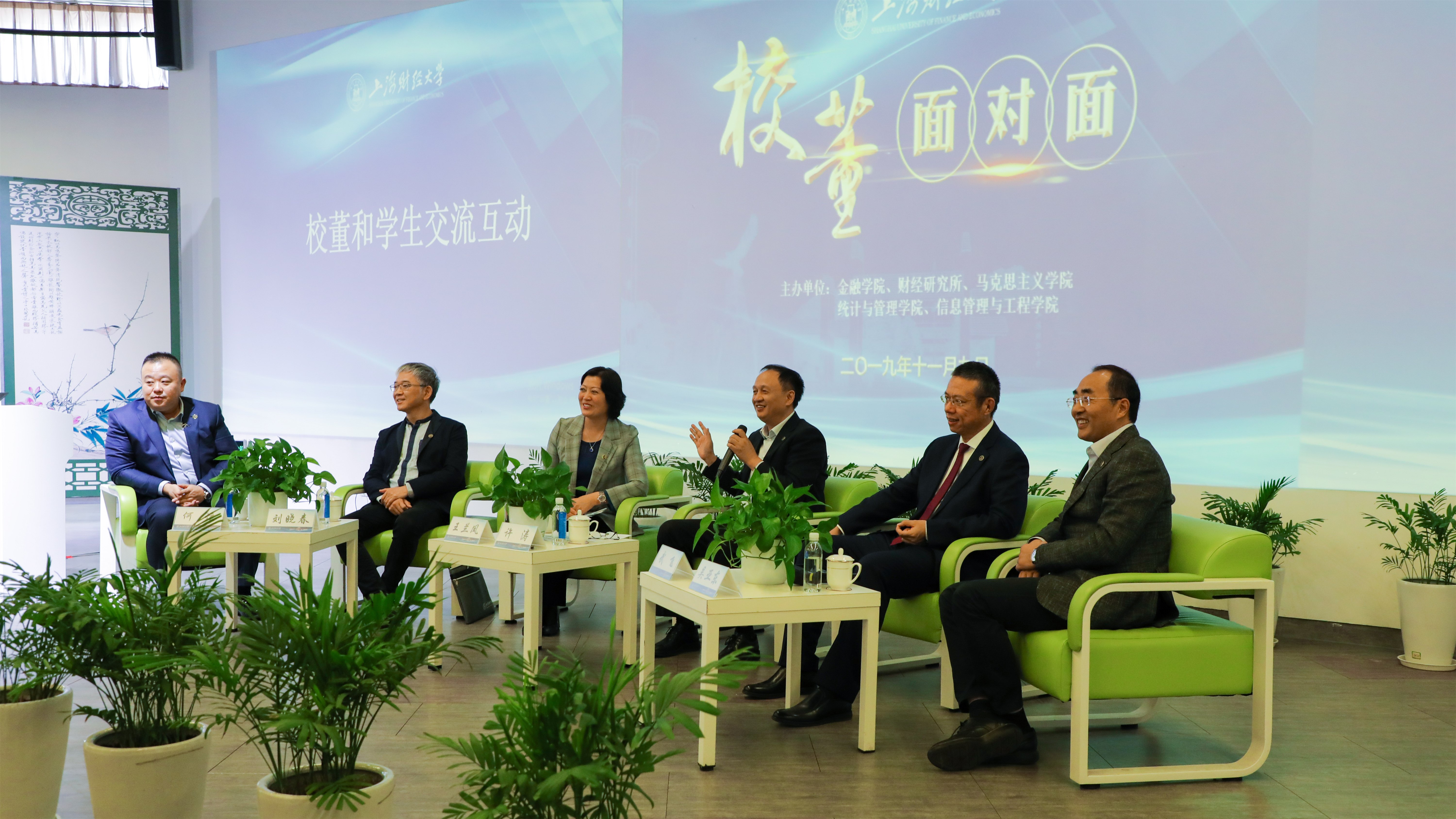 商学院报告厅举行的“校董面对面”座谈活动由上海财经大学党委副书记、校长蒋传海校董主持,万黎峻校董、张诚校董、高央校董、连柏林校董以及商学院、外国语学院、法学院、数学学院的领导和师生参加了座谈。副校长姚玲珍、统战部部长周杰普列席了座谈会。