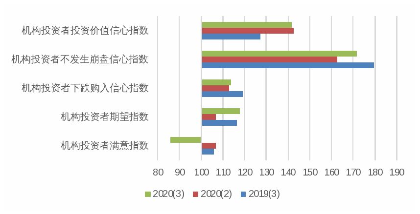 根据上海财经大学应用统计研究中心和上海社会调查研究中心上财分中心的调查,2020年三季度上海财经大学上海市机构投资者信心指数为124.81点,环比基本持平,同比下降3.45点。表明本季度机构投资者对市场的看法积极,整体心态稳定。