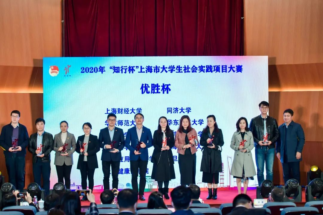 大会表彰了2020年上海市大中学生社会实践优秀项目、优秀指导教师、先进个人,我校2支项目团队获市级一等奖,4支项目团队获市级三等奖,多名师生获评优秀指导教师、先进个人,还摘得了2020年“知行杯”上海市大学生社会实践项目大赛“优胜杯”。