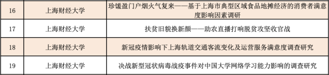 上海财经大学2020年“知行杯”暑期社会实践于6月中旬正式启动,分设脱贫攻坚与决胜全面小康、疫情防控与经济社会发展、区域发展与改革开放先行先试、城市运行与公共服务保障、“四史”宣讲与改革开放成效寻访五类选题,经项目申报、专家评审,最终741名师生组成111支调研团队,走进社会、亲身体验,在全面落实疫情防控工作要求的前提下,充分积极探索“互联网+社会实践”新模式,综合运用网络资源和平台工具开展“云组队”“云调研”“云访谈”“云实践”,实现线上线下融合联动,就近就便开展实践调研,用专业所学为国家经济社会发展贡献智慧力量。