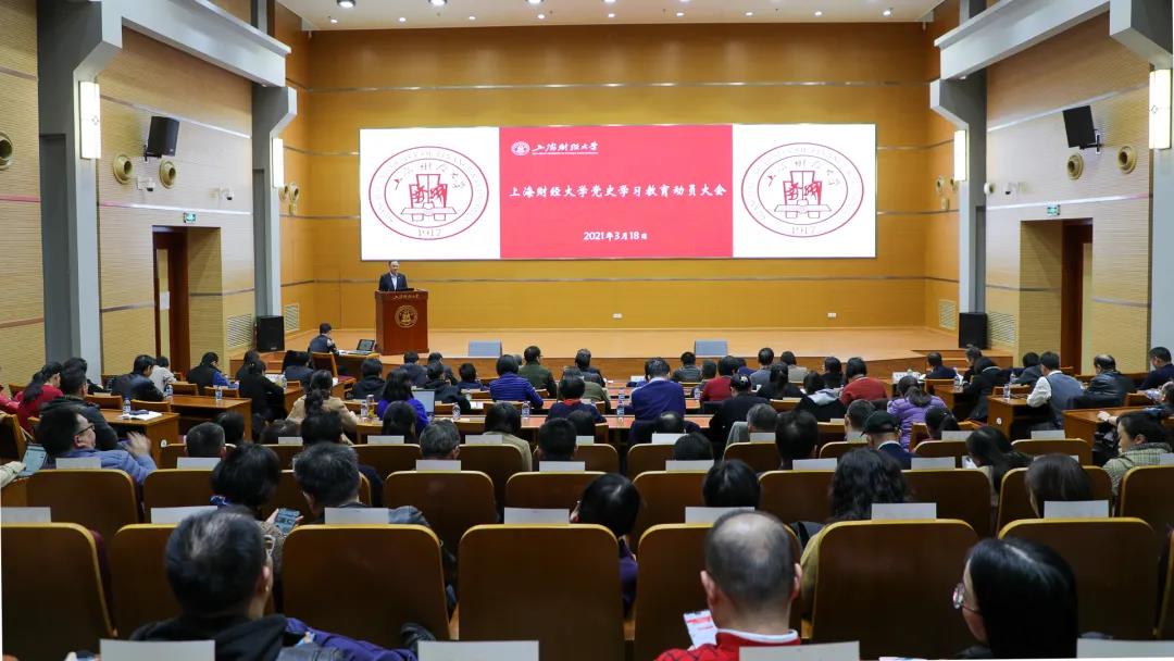 3月18日,上海财经大学召开党史学习教育动员大会,认真学习贯彻习近平总书记在党史学习教育动员大会上的重要讲话和中共中央印发的《关于在全党开展党史学习教育的通知》精神,贯彻落实教育部党组和上海市委、市教卫工作党委部署要求,对学校开展党史学习教育进行全面动员。校党委书记、校党史学习教育领导小组组长许涛作动员讲话。教育部高校党建工作联络员陈晓漫出席会议。