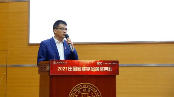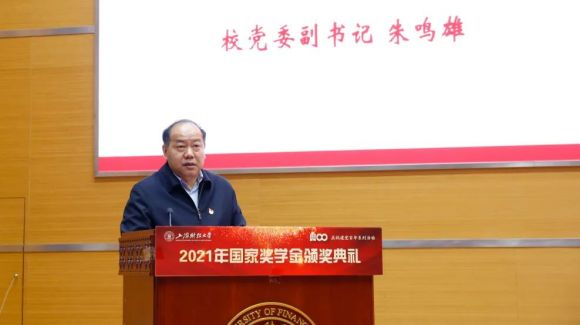 校党委副书记朱鸣雄宣读了《上海财经大学2019-2020学年国家奖学金表彰决定》并勉励获奖学生再接再厉、勇创佳绩。