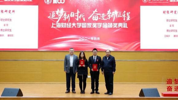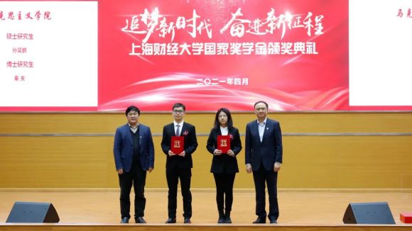 4月13日,上海财经大学2021年国家奖学金颁奖典礼在武川路校区创业中心一楼报告厅隆重举行。校党委书记许涛,常务副校长徐飞,副校长刘兰娟,校党委副书记朱鸣雄,校党委常委、党委宣传部部长章益国,校党委常委、党委统战部部长周杰普出席典礼。各学院(所)、相关职能部处负责人,教师、辅导员代表受邀出席,与2019-2020学年国家奖学金获奖学生齐聚一堂,共同见证荣耀时刻。
