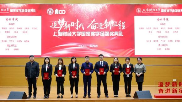国家奖学金评选、表彰、先进典型宣传等活动是学校营造勤奋求学、互学互鉴优良校风学风的重要载体,国家奖学金颁奖典礼更是朋辈引领、榜样示范的重要育人举措。在建党百年新起点即将到来之际,本次典礼以“追梦新时代,奋进新征程”为主题,激励广大上财学子见贤思齐、奋发有为,以砥砺奋进的精神风貌和奉献青春的使命担当,把无悔的青春写在祖国大地上。2019-2020学年,我校共有156名学生荣获国家奖学金,其中本科生70名、硕士研究生60名、博士研究生26名。