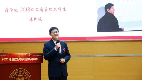 在这次颁奖典礼之前,我脑海中国奖获得者的形象大概可以用“优秀”和“勤奋”来概括,然而在典礼之后,阳光、上进、友善、自信、幽默、坚韧……越来越多的形容词为之前略显单一的印象填充血肉,让我看到了上财青年多姿多彩的一面。令我记忆最深刻是现场播放的视频中每一位同学的照片和格言,他们的笑容和话语里充满了正能量,也展露出他们对学业、对生活、对人生的思考,给了我很大的感动。希望我们每个人都能继续勇敢追梦,实现我们的理想!