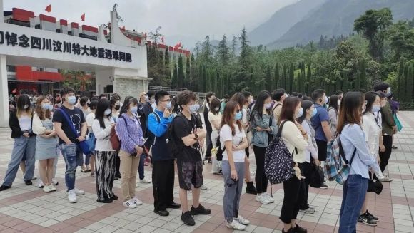 本次大艺展展演结束后,民乐团师生踏上艺术实践之旅。作为党史学习和国情教育实践的重要组成部分,5月9日,民乐团师生怀着肃穆的心情前往映秀、汶川。师生参观了映秀镇漩口中学地震遗址。在解说员的引导下,师生们进行了默哀仪式,脱帽敬礼、献花,向灾难中的罹难同胞和赈灾英雄表达缅怀与敬意。随后,师生们前往汶川地震遗址纪念馆。赈灾现场重现眼前,互相鼓励、相携前行的坚强跃然在目。师生们为有英雄的人民感到骄傲,为生在强大的祖国感到自豪。