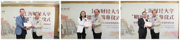 2018年4月10日下午,上海财经大学“明德楼”揭幕仪式暨首届“明德”青年领导力训练营开营仪式在武东校区明德楼一楼会议室举行。我校校董、上海道得投资管理合伙企业创始人武飞校友,上海道得投资管理合伙企业董事总经理张良校友,领导力语法创始人、独立顾问李峰先生,我校党委副书记朱鸣雄及相关学院领导、职能部门领导、训练营学员代表等共同出席揭幕仪式。