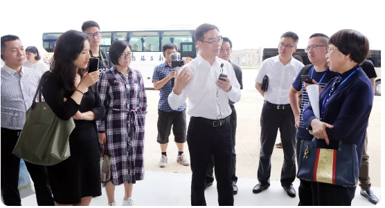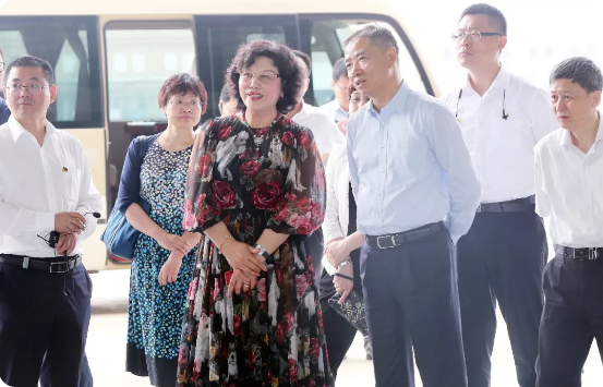 辛国斌副部长一行实地考察了万丰机场和铝轮智慧工厂,在考察过程中不时地与陈爱莲主席及万丰智能制造相关负责人互动,询问有关工程工艺细节,探讨智能制造相关措施。