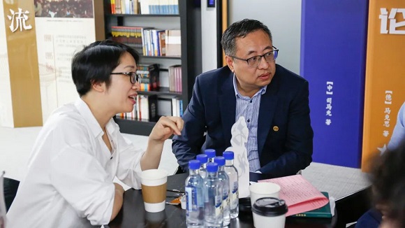 一本本校友和师生捐赠的图书,一段段上财商学的发展历程,一位位卓越的商学研究大家,商学院浦东教学点的图书阅览室为与会人员营造了一个沉浸式的学习课堂。大家围坐一堂,聚焦党史学习,立足自身岗位,畅聊新发展,谋划新征程,为学校和地方发展改革建言献策,并就工作及生活的困惑进行了反馈。校领导们与大家热情交谈,就学校改革、教师发展、人才培养等良言实策进行交流讨论,认真聆听大家的建言,对大家提出的建议意见进行详细询问,时不时调换位置认真研讨,现场气氛轻松,交流融洽。