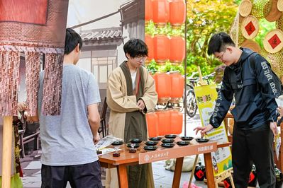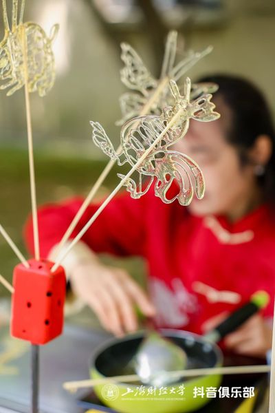 指尖流转千年技艺,现场还设置了非遗文化游园会,将非遗技艺与书香校园相融合,上财师生在手工艺人的指导下,亲身体验烧箔画、拓印、吹糖人、泥人、草编、浸染等传统技艺,培养对传统文化的认同与热爱,点燃心中传承之火。