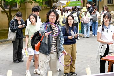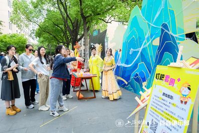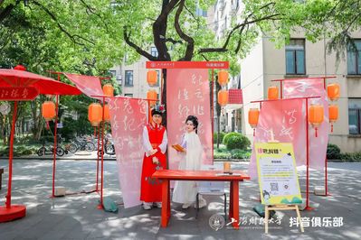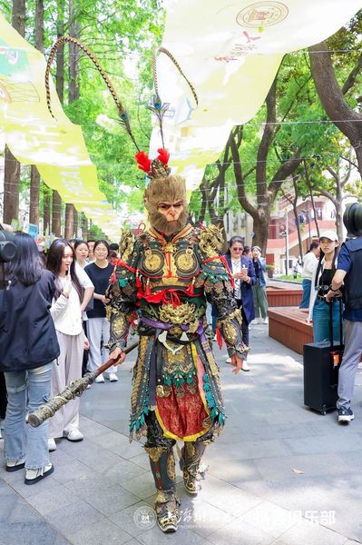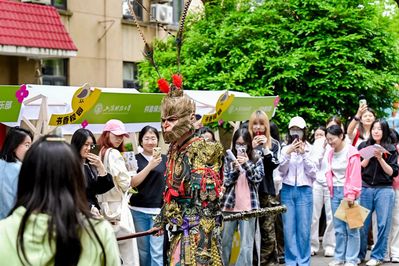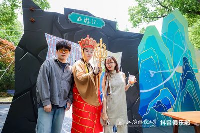 上海财经大学联合抖音俱乐部设立了四大名著主题文化体验专区。四大名著经典代表人物“穿书”而来,与同学们一同重温经典、演绎经典,沉浸式体验传统文化。黑悟空快闪表演,伴随主题音的磅礴旋律,在活动现场与师生近距离互动,开启一场视觉与听觉的双重震撼!