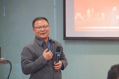 秦健聪校董代表苏州校友会,对许涛书记一行的到来表示欢迎。作为东南电梯公司董事长,他对活动选址在公司举办表示感谢。秦健聪介绍了苏州校友会的建设与发展、定位与目标等情况,表示苏州校友会将在助力学校招生就业工作上链接资源、扎实推进,为母校事业发展汇智聚力、高歌同行。他还分享了公司在助力中国航天事业发展上的积极作为和卓越成效。