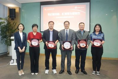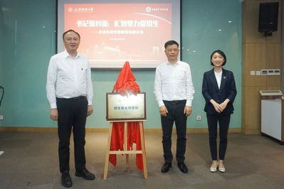 随后,活动进入苏州招生就业联络站揭牌仪式环节。秦文佳代表学校向 6 所中学赠送了校门漆盘纪念品,彭曦向东南电梯公司授予“上海财经大学实习实践基地”牌匾,周国良向苏州校友会授予“校友之家-东南 e 馆”和“校友会客厅”牌匾。许涛、秦健聪、秦文佳共同为苏州招生就业联络站揭牌,宣告苏州联络站正式成立。