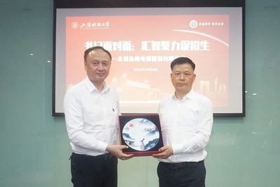 在中国航天日这个特殊时刻,东南电梯作为中国航天事业的合作伙伴,向学校赠送了搭载“苏州文化芯片”的航天纪念丝绸。许涛回赠了具有学校特色和文化底蕴的纪念瓷盘,并表示从财经智库到硬科技突破,上财人正在书写新时代答卷,这座矗立在苏州工业园区的联络站,将如航天发射塔般助力学子腾飞。