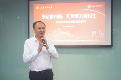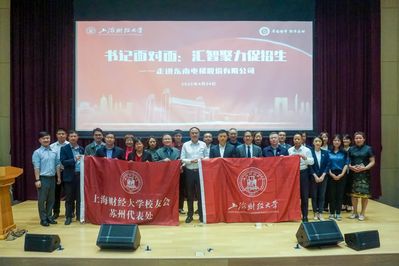 2025 年4月24日中国航天日,上海财经大学“书记面对面”活动暨苏州招生就业联络站揭幕仪式,在校董企业东南电梯股份有限公司“东南 e 馆”隆重举行。本次“书记面对面”活动,以“汇智聚力促招生”为主题,联动毕业生高质量充分就业的目标,在苏州圆满举办。学校党委书记许涛、党委副书记周国良等校领导,苏州六所顶尖中学校长及代表,校友会苏州代表处会长秦健聪校董、常务副会长佘自强校董等数十名校友,学校相关学院及部门负责人、东南电梯股份有限公司有关部门负责人等参与活动。活动由学校合作发展处处长陈红梅主持。