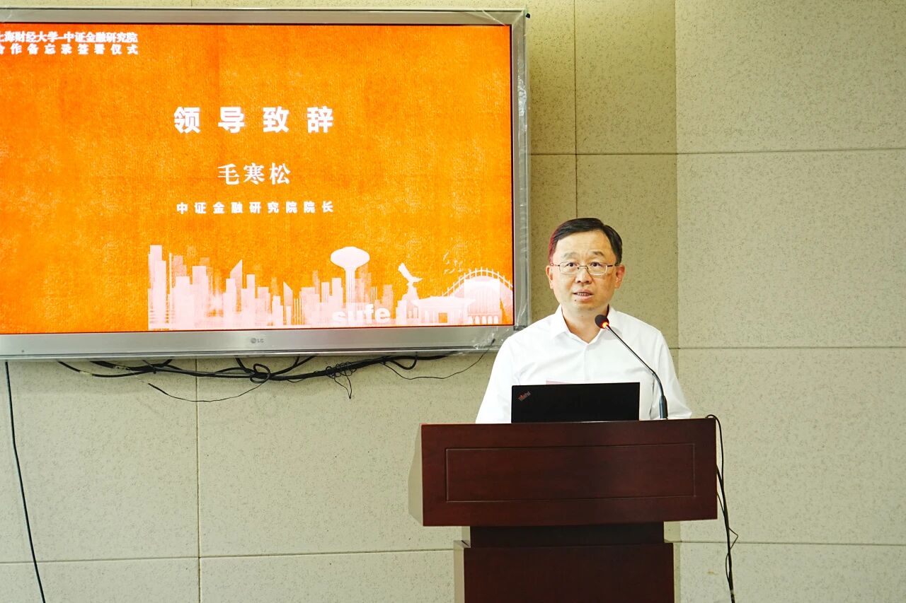 毛寒松院长在致辞中表示,双方可发挥各自在理论研究和政策研究领域的优势。在课题研究、学术活动、人才交流、研究资源开展合作,共同探索既遵循一般规律又符合我国国情的资本市场研究体系。建议双方合作要聚焦资本市场重点难点问题,形成指导实践的可落地的过硬成果。加强资本市场重大前沿性问题交流,通过激荡创造性思维形成前瞻性思考;更加注重资源整合和供需匹配。