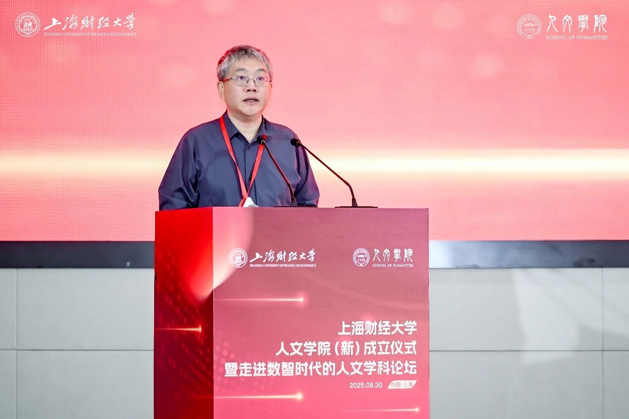 上海师范大学副校长陈恒作为兄弟院校代表致辞。他表示,人文学院的“新”要体现为向“真正人文”的学院转型,这对于上财在数智时代培养追求真善美、具有批判精神、加持深厚人文修养的高层次人才将具有深远影响。