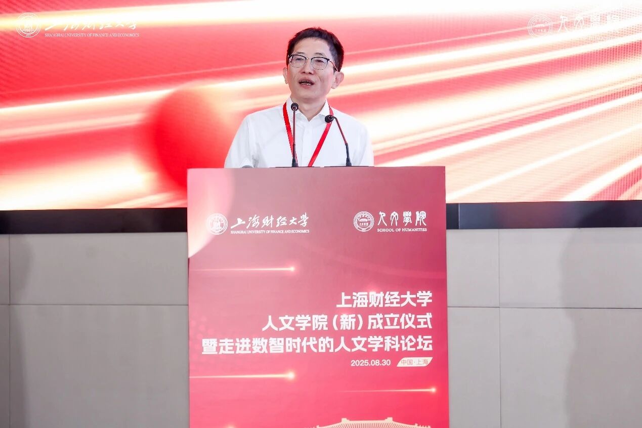 当前,我们正处在一个深刻变革的时代,特别是以新一代人工智能为代表的数字技术正以前所未有的速度和广度重塑世界。上海财经大学人文学院(新)将以本次成立大会为契机,在学校学科发展布局的战略引领下开启数智时代人文学科建设的新征程,通过深刻把握新文科建设内在规律,积极探索人文通识教育与人文学科建设协同发展的特色路径,努力打造具有鲜明上财特色的人文通识教育品牌。
