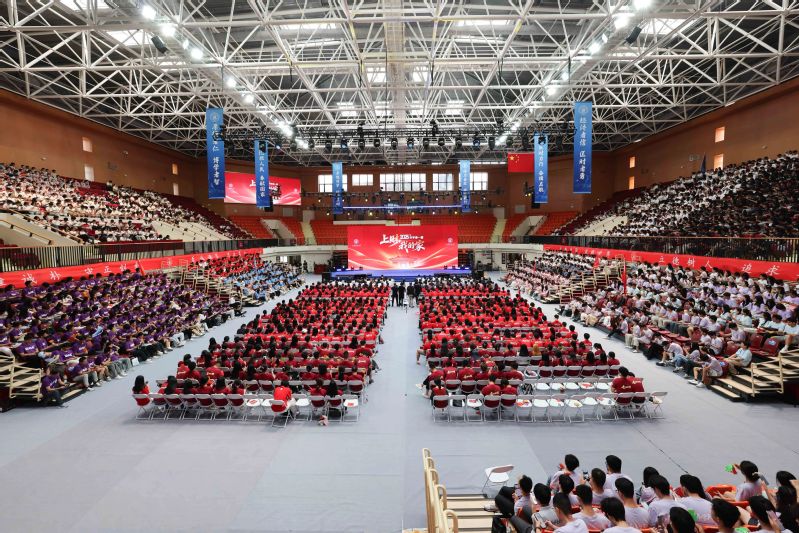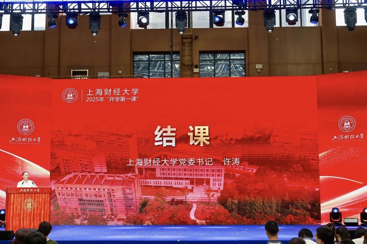 9月7日上午,上海财经大学2025级新生齐聚上海财经大学体育馆,共同聆听由上海财经大学党委书记许涛与特邀嘉宾和师生代表共同讲述的新学期第一堂思政课。这场以“上财,我的家”为主题的大课,以温暖而深厚的情感基调、丰富而真实的叙事表达,通过情景表演、嘉宾讲述、视频展演、师生对话、文体展示等多种形式,分为“家是立志明德的精神航标”“家是教你担当奉献的青春热土”“家是助力全面发展的成长港湾”三个篇章,全面呈现了上财人的精神传承、使命担当与成长图景。