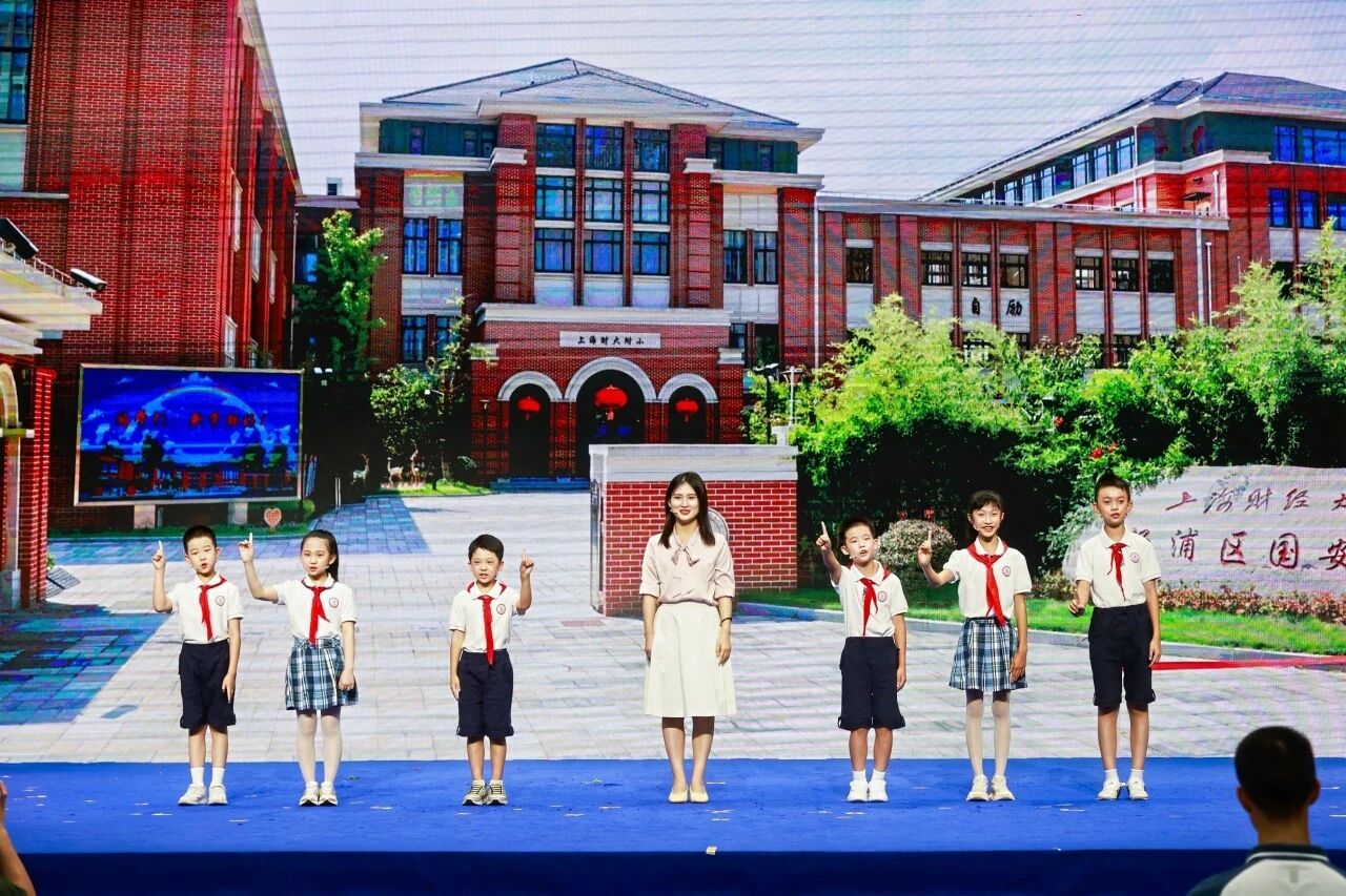 大学的优质美育教育资源还辐射至附属学校,上财附小卞松泉校长通过视频寄语新生,胡云老师带领六位“小财宝”登台互动,讲述他们参观商学博物馆、参加国际文化节等经历,展现了大中小思政教育一体化的生动实践。